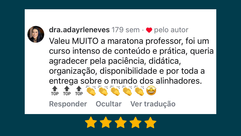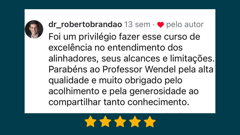 Este curso é diferente! Não sou vinculado a nenhuma marca comercial e não ofereço conteúdo de autoajuda, ou passo memes na aula. Comigo, você aprenderá ortodontia com alinhadores de maneira séria e baseada em evidências.