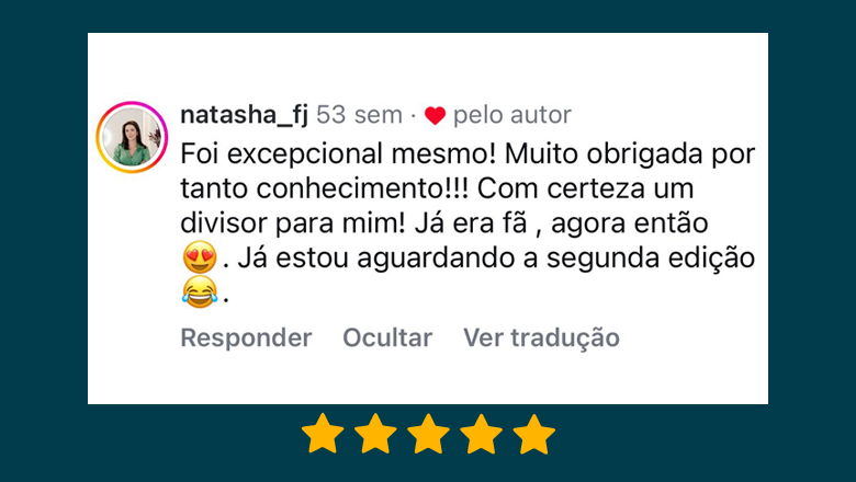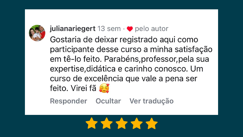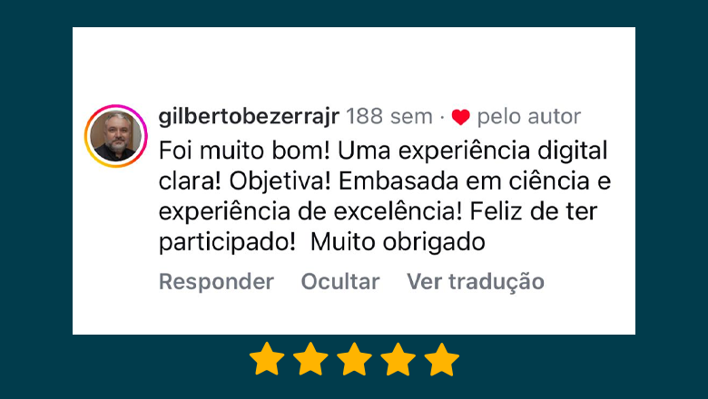 Esse curso acontece apenas duas vezes ao ano e a data de janeiro de 2025 já está separada. Se você quiser participar, reserve já a sua vaga!